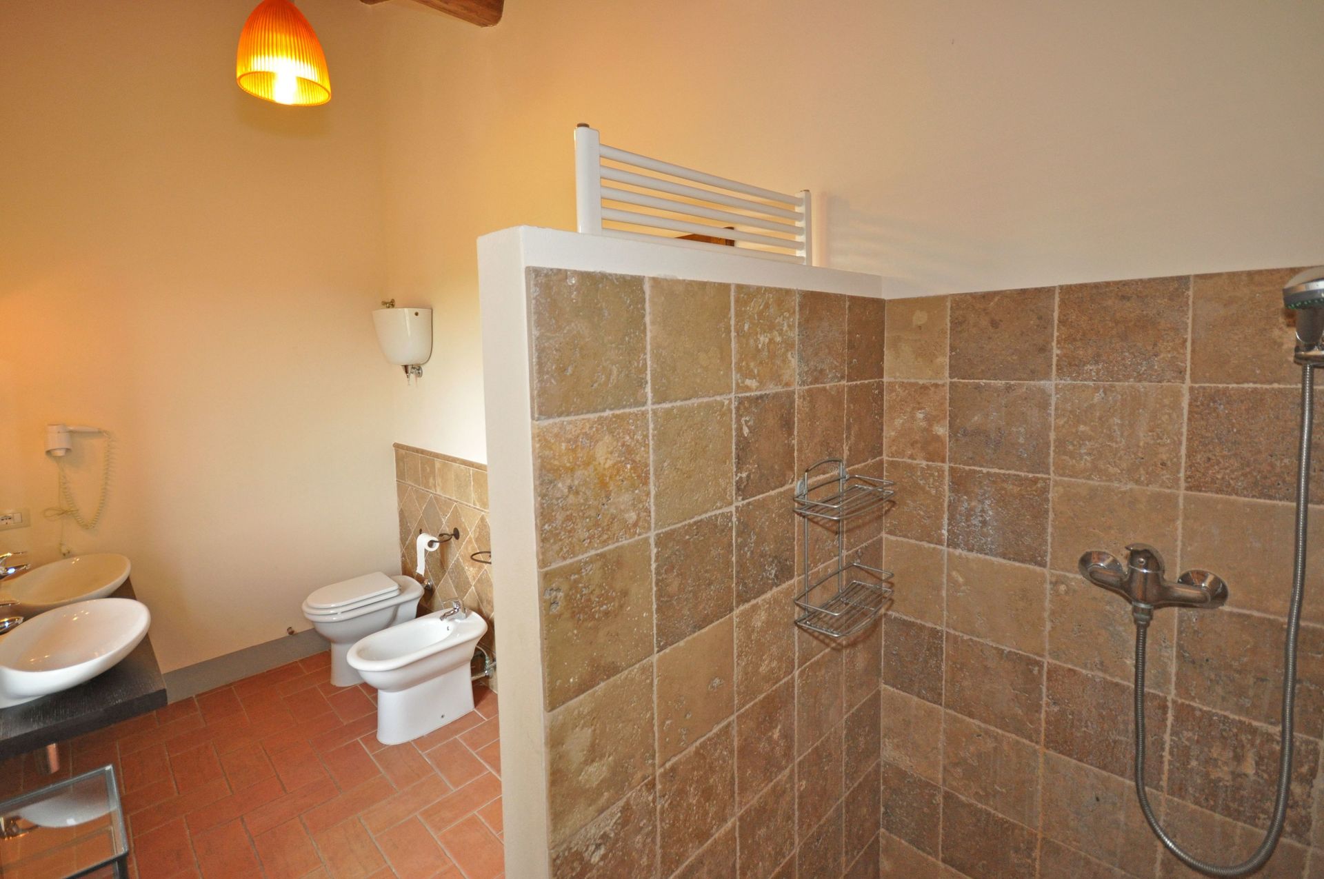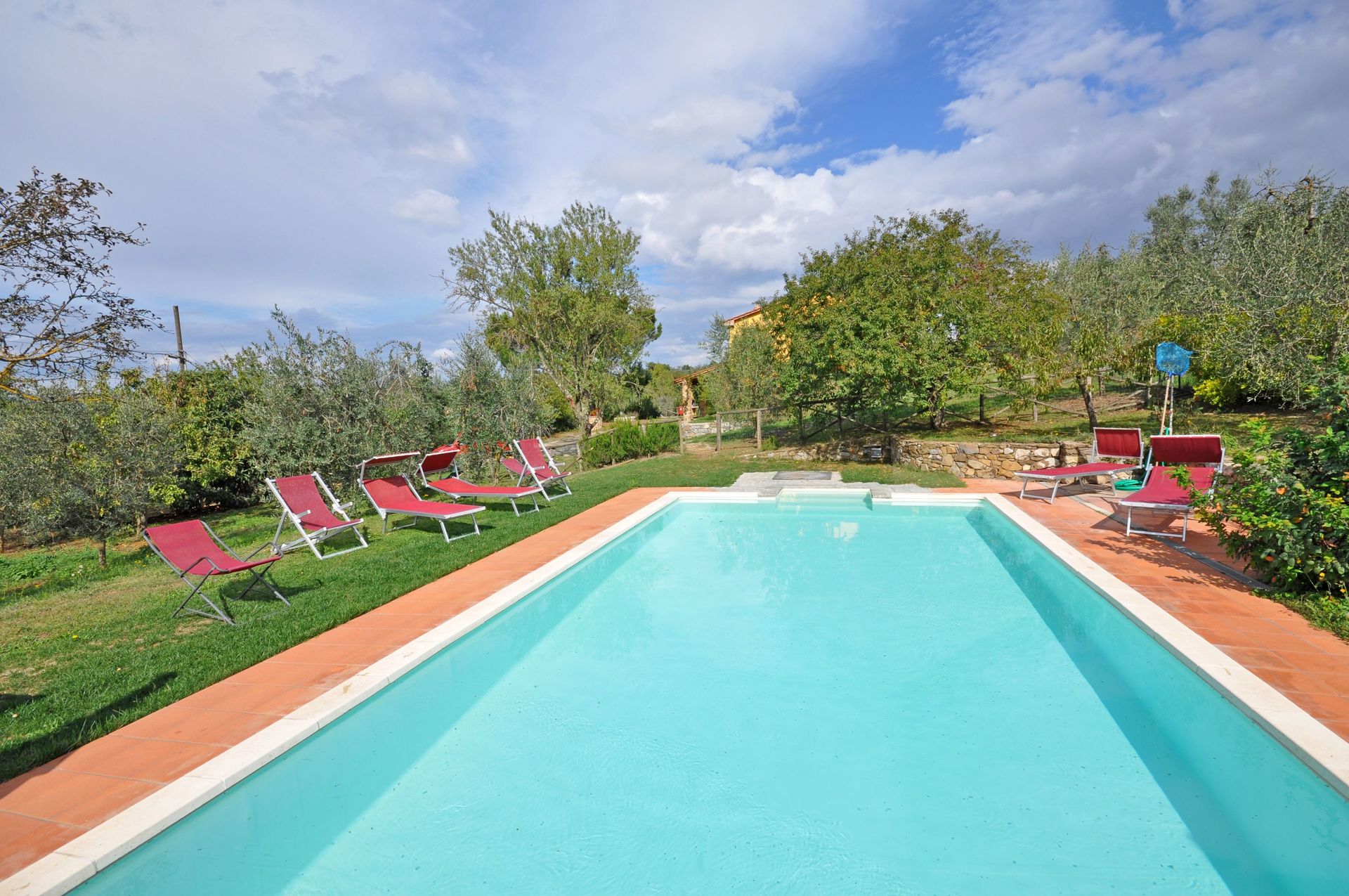 Un amplio jardín rodeado de cipreses y otros frondosos árboles, vistas a las colinas y a los exuberantes paisajes de la Toscana, una piscina privada, un tejado de terracota, una bonita cocina tradicional toscana, encantadoras habitaciones decoradas con detalle y esmero, techos altos con vigas vistas, una bonita zona cubierta para comer al aire libre, muchas habitaciones con salida directa a la terraza... todo esto y mucho más es lo que puede esperar de la maravillosa y típicamente toscana Villa La Fragola (que significa Villa de la Fresa) a sólo 500m del pueblo de Chianacce y a 19km (12 millas) de Montepulciano. Situada en una parte del mundo especialmente pintoresca y tranquila, ideal para aquellos que buscan alejarse de todo y relajarse en sus vacaciones, esta joya le permite obtener un verdadero sabor de la vida encantadora y pausada de la Toscana rural, mientras que también está idealmente situada a sólo 5 km de la autopista y permite un fácil acceso a muchos de los destinos y atracciones más famosos de la región. Aquellos que elijan Villa La Fragola, por lo tanto, obtendrán lo mejor de ambos mundos - la escapada de descanso en una campiña toscana de ensueño y un montón de oportunidades para ser un "turista serio" y visitar algunos lugares clave en su lista de cosas que hacer antes de morir. Además de Montepulciano, a sólo 19 km, también se encuentran otras ciudades cercanas como Cortona, a 20 km, Arezzo, a 45 km, Montalcino, a 52 km, y Perugia, a 62 km.