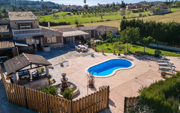 Finca "Cas Pec", muy amplia, bonita, agradable de 2 plantas, rodeada de campos. En las afueras de la localidad, a 1.5 km del centro de Selva, lugar tranquilo, soleado, a 30 km del mar, a 30 km de la playa, en el campo. Privado: jardín grande, bonito, terreno con árboles frutales, piscina en forma de riñon (8 x 4 m, Disponible por temporada: 01.Mar. - 31.Oct.). Ducha exterior, terraza-jardín, muebles de jardín, caseta de barbacoa, parque infantil. En el inmueble: acceso a internet, Wifi, calefacción central, aire acondicionado, alarma, lavadora. Aparcamiento junto a la casa. Tienda 1.5 km, tienda de comestibles 1.5 km, centro comercial 3.5 km, restaurante 1.5 km, parada autobús 1 km, estación de tren "Inca" 5.5 km, playa de arena "Alcudia" 25 km. Atracciones en los alrededores: Sierra tramuntana, Rutas ciclistas, Senderismo. A tener en cuenta: coche recomendable. Vivienda adecuada para 6 adultos. El propietario vive en el mismo terreno.