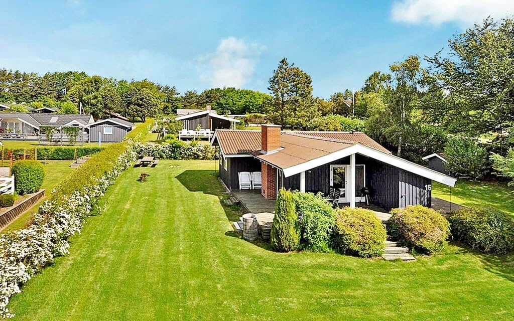Holiday cottage with a great garden surrounded by trees and bushes. Two terraces, one facing east where you can ejoy your breakfast, and one facing south/east where you can enjoy the sun the rest of the day and evening. This terrace is partly covered and suited for barbecues in the evening or just observing the children playing in the garden.