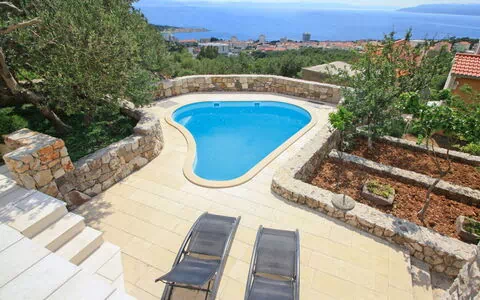 La casa de vacaciones "Belvedere" se encuentra en la localidad de Puharići, a 1,5 km del centro de Makarska, una animada ciudad costera de Dalmacia. La propiedad se distribuye en 2 plantas y ocupa una posición tranquila y soleada en una ladera, ofreciendo un refugio sereno para quienes buscan confort y belleza natural. El terreno privado, completamente vallado, se extiende sobre 400 m2 y proporciona un entorno seguro y privado durante toda la estancia.