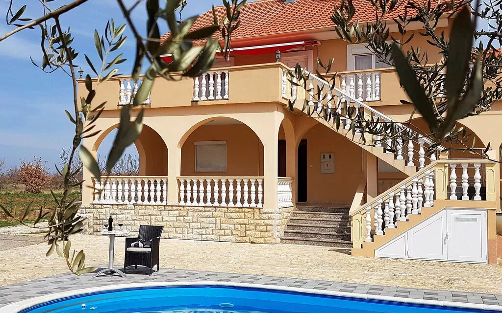 Škabrnja a 25 km de Zadar: Casa de dos viviendas "Marija", de 2 plantas. A 1.8 km del centro de Škabrnja, a 17 km del centro de Sukošan, lugar soleado, a 17 km del mar. Privado: terreno 1'500 m2 (vallada), piscina (8 x 4 m, 140 cm de profundidad, 01.05.-01.10.). En el inmueble: acceso a internet, lavadora. Aparcamiento (para 8 coches) junto a la casa en el mismo terreno. Tienda 1.8 km, restaurante 17 km, playa de gravilla 17 km. A tener en cuenta: aeropuerto 18 km de la casa.