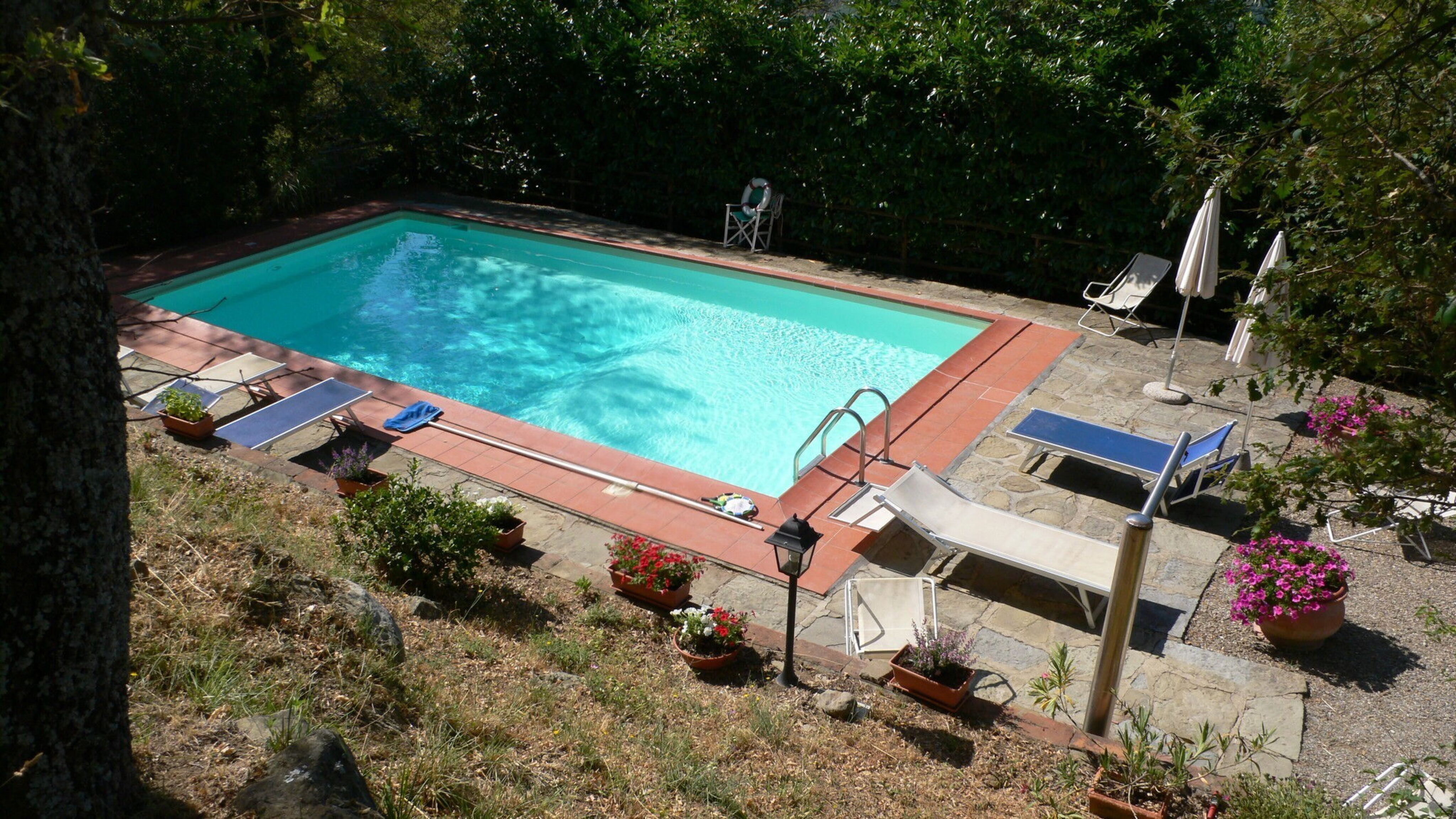 Großes Pool (2 verschiedene Tiefen, sauber + gepflegt), hervorragend zum Schwimmen geeignet (auch nachts --> Poollampe + Gartenbeleuchtung), angenehme Gartendusche.